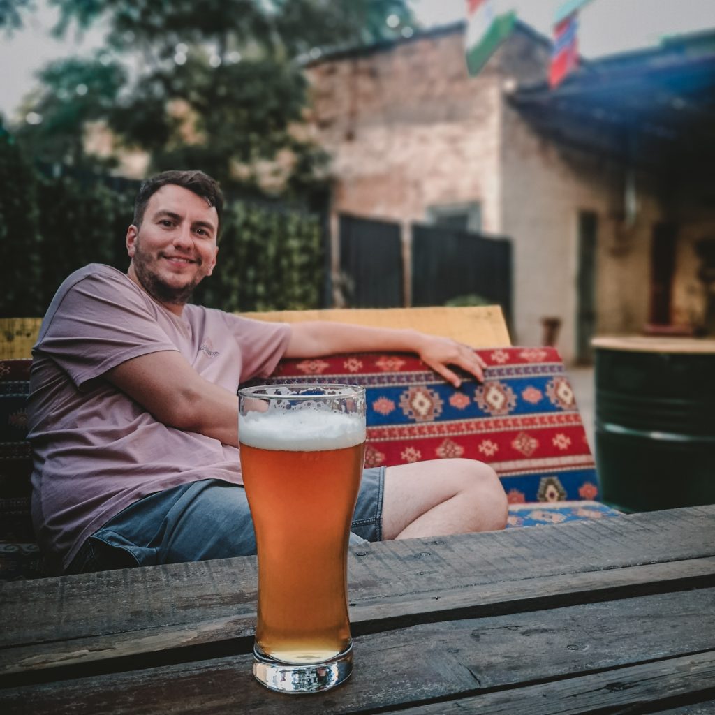 Wir beschließen den heißen Tag für die weiteren Planungen zu nutzen. Wir kommen wieder mit anderen Leuten aus dem Hostel ins Gespräch, recherchieren für Usbekistan, kühlen uns zwischendurch im Pool ab, spielen eine Runde Tischtennis und kochen mal wieder vor. Morgen steht die lange Fahrt von Bischkek nach Osch an. Dafür wollen wir natürlich mental und kulinarisch (eine klassische Kombi, die ja auch manchmal Hand in Hand geht) gewappnet sein. Zum Abschluss des Tages wollen wir eigentlich noch einmal zum Save the Ales, um dort ein Bier zu trinken. Auf dem Weg dorthin laufen wir allerdings an einem interessanten Gebäude vorbei. Hinter den dunklen Mauern befindet sich ein Irish Pub und der hat sogar einen großen Hinterhof. Kurzerhand ändern wir unsere Pläne und versuchen hier das lokale Bier. Auf den „Rostigen Nagel“ (Na, bei wem werden hier Marburger Erinnerungen wach?) verzichten wir ausnahmsweise. Eigentlich wollen wir nur eins trinken und weiterziehen. Aber dafür ist es hier einfach zu schön, es ist richtig was los und dann spielt auch noch eine Liveband. Wir können nicht anders und bleiben. Der Abend ist sehr schön.
