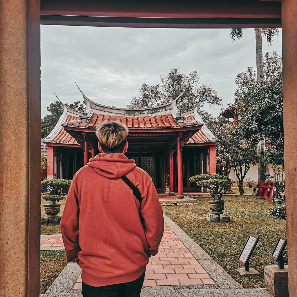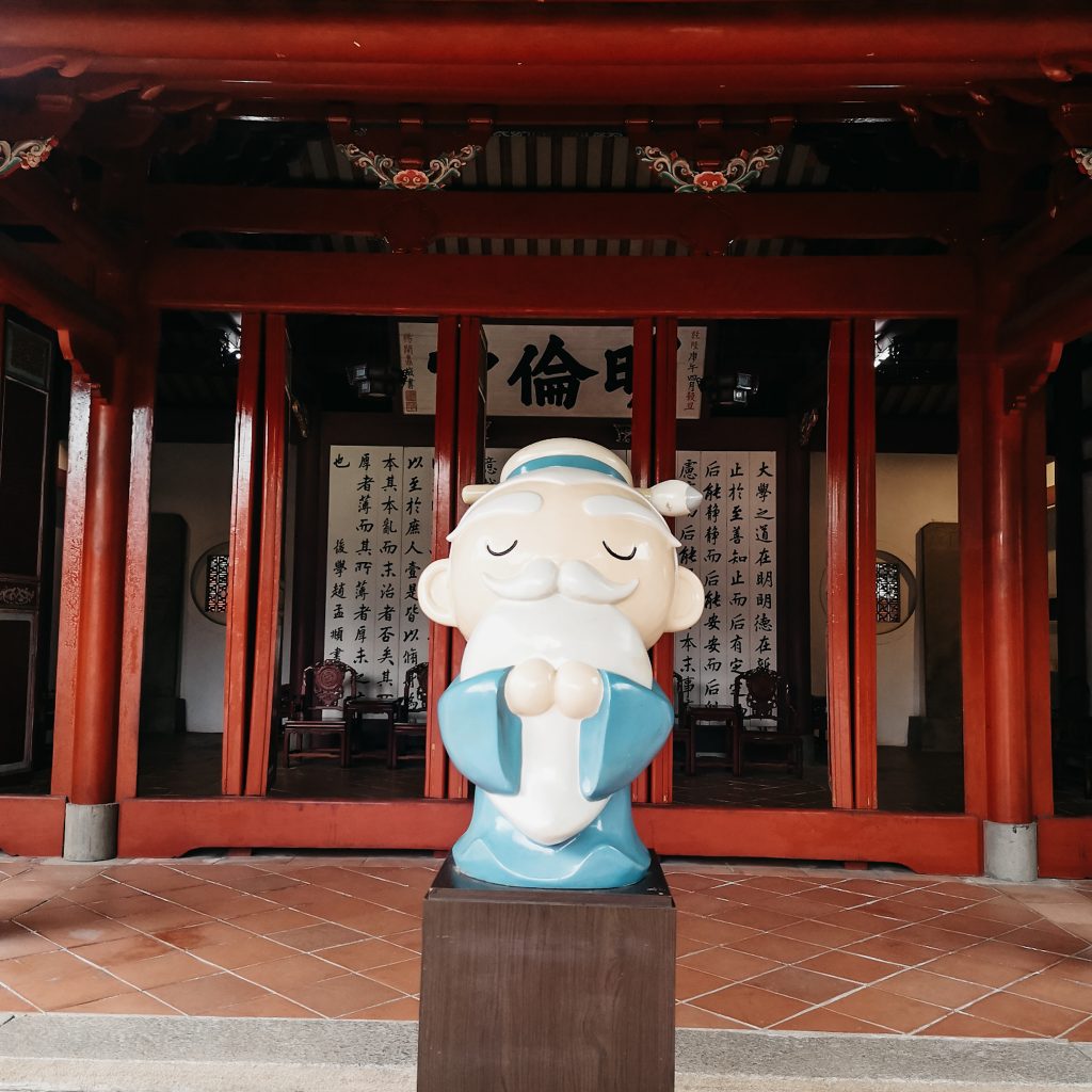 Na das nehmen wir uns erstmal zu Herzen. Wenn schon nicht mit dem Rad, dann setzen wir unsere Rundreise mit Bahn und zu Fuß weiter. Ein paar Tage zum Verdauen wird es trotzdem noch dauern. Jetzt statten wir aber erstmal Konfuzius einen Besuch ab. Der Konfuzius Tempel wurde 1665 gebaut. Neben einem Tempel gehört auch eine Nationalakademie zum Gelände. Hier hielten Lehrer Vorträge und bildeten Intellektuelle aus. Die Anlage von Wen Miao ist die erste ihrer Art in der Geschichte Taiwans, wird daher als Erste Akademie Taiwans bezeichnet.
