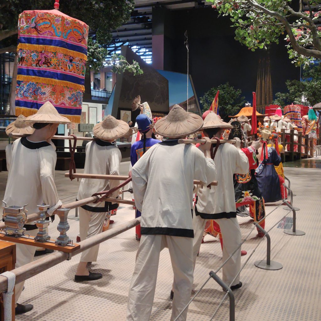 Das Museum beginnt aber mit dem Ursprung der Menschen auf Taiwan. Genaue Belege zu den ersten Besiedlungen gibt es nicht, dafür aber ein paar mögliche Theorien. Unter anderem geht man davon aus, dass die ersten Siedler:innen Fischer waren, die auf die damals noch anders geformte Insel kamen und sich kleine Hütten bauten. Eine andere Theorie besagt, dass Taiwan früher noch eine direkte Landverbindung zum asiatischen Kontinent hatte und von dort vor über 20.000 Jahren die ersten Menschen diesen Landteil besiedelten. Zwar kann davon ausgegangen werden, dass sich im Lauf der Zeit immer wieder chinesische Fischer, Händler oder Seeräuber auf Taiwan aufhielten, die erste große Einwanderungswelle und dauerhafte Besiedlung von China aus erfolgte jedoch erst Anfang des 17. Jahrhunderts unter der Herrschaft der Niederländer.