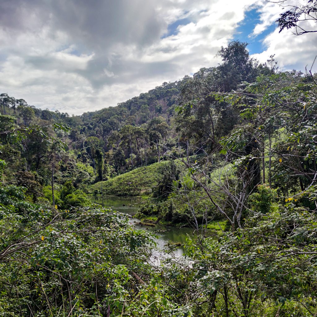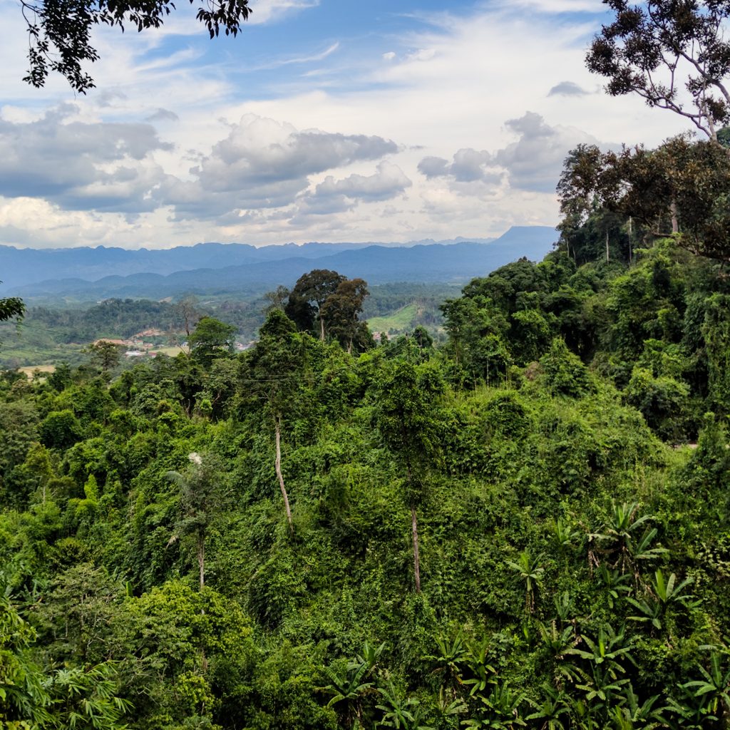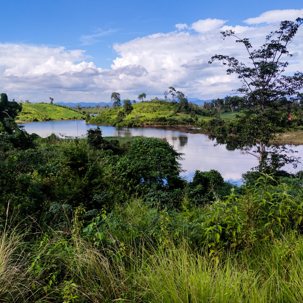 Weiter gehts. Wir düsen weiter und um uns herum ändert sich die Landschaft. Wir fahren Serpentinen bergauf, es wird grüner und um uns herum ist es dicht bewaldet. Auf der Hochebene angekommen, kommen wir an großen Seen vorbei. Die Natur ist wunderschön und es macht richtig Spaß, mit einem Podcast auf den Ohren mitten durch zu fahren. Ab und zu halten wir kurz, machen ein paar Fotos und genießen die Aussicht. Dann kommen wir an unserem heutigen Ziel an, dem Phosy Guesthouse.