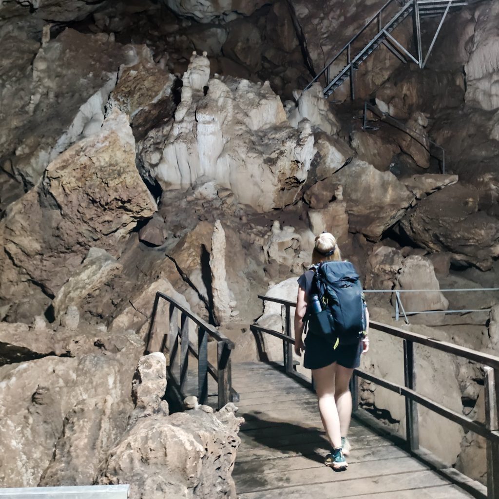 Die Höhle ist ganz schön und wir schauen uns alles ganz in Ruhe an. Sie ist relativ groß und es gibt große Stalagmiten und Stalaktiten. Ein Teil der Höhle ist mit Wasser gefüllt und zu einer späteren Tageszeit kann man sich auch einen Kapitän mit Boot mieten und weiter in die Höhle fahren. Die Höhlen sind übrigens durch Wasser in den Karstbergen ausgespült worden. Damit hört unser Wissen zu Höhlen auch schon auf.