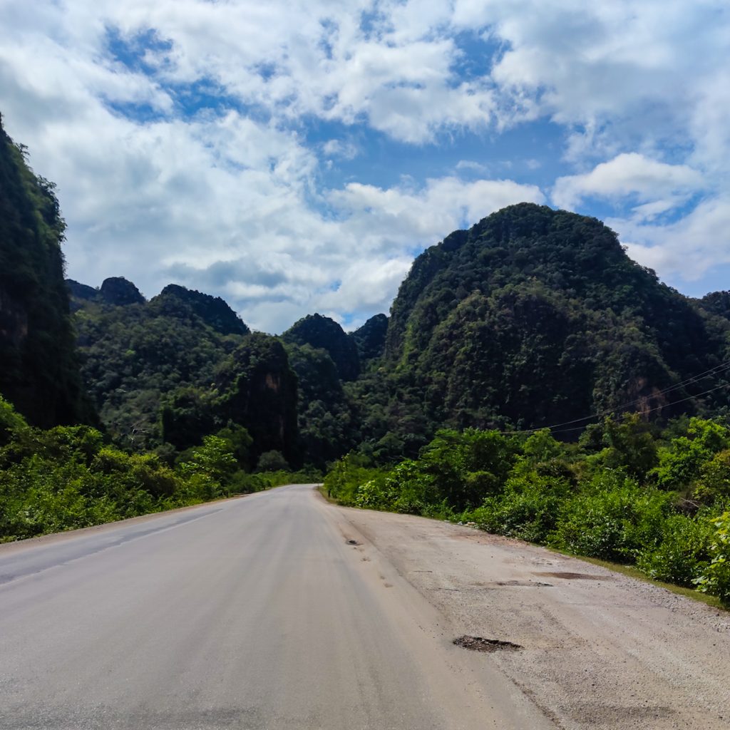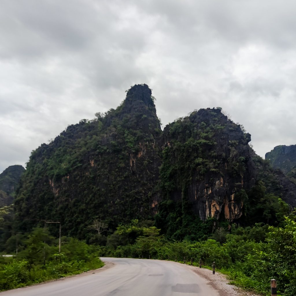 Lustigerweise sind wir mal wieder mit zwei Mädels im Bus gefahren, die wir schon in Thakhek kennengelernt haben. Eine Deutsche und eine Französin. Die beiden haben sich für die Nacht Schlaftabletten eingeschmissen und sind noch etwas neben der Spur. Alexandra sucht nicht nur ihr Gepäck, sondern auch ihre Schuhe. Auf Socken läuft sie um den Bus herum und wird irgendwann fündig. Mit den beiden und noch drei Einheimischen fahren wir einmal durch die Stadt zur nächsten Busstation. Hier ist es nämlich folgendermaßen. Wenn man in den Süden fahren möchte, muss man zur Southern Busstation, wenn man Richtung Norden fährt, gibt es eine Northern Busstation. Wie sinnvoll dies ist, sei mal dahingestellt. Die Haltestellen sind meist etwas außerhalb der Stadt und man benötigt ein Tuktuk, um dorthin zu kommen. An der Northern Busstation angekommen, kaufen wir ein Ticket für die Weiterfahrt. Es ist sehr übersichtlich und es gibt sogar einen Ticketschalter. Abfahrtszeit? Wenn der Minivan voll ist. Die Zwischenzeit nutzen wir für einen schlechten und gesüßten Pulverkaffee und den Verzehr von kleinen Brötchen. Wir hoffen immer noch, dass die undefinierbare Füllung nicht aus Fleisch bestand. Dann wird’s langsam voller und die Fahrt geht weiter. Die Straße nach Vang Vieng ist übrigens sehr gut ausgebaut und steht einer deutschen Autobahn in nichts nach. Der Grund: Die Straße führt von der Hauptstadt von Laos in Richtung Norden nach China. Und wer hat ein Interesse daran, gute Verbindungsstraßen nach China zu haben? Naja, kennt ihr ja. Nach ungefähr zwei bis drei Stunden kommen wir in Vang Vieng an. Jetzt haben wir es nicht mehr weit bis zum Hostel und können die 10 Minuten zu Fuß zurücklegen. Hallo Vang Vieng.