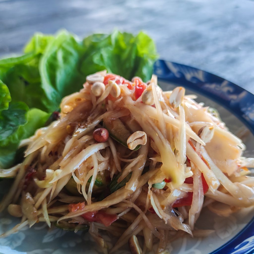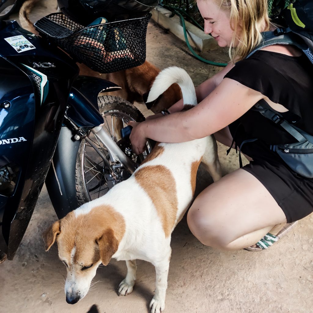 Es befindet sich direkt am See. Wir essen zu Mittag und mal wieder bestellen wir unser kulinarisches Highlight – Papayasalat! Der Salat wird aus grünen Papayastreifen, viel Limette, Chili, Knoblauch, Erdnüssen und oft auch Fischsoße angemacht. Bis auf die letzte Zutat ein richtig erfrischendes und köstliches Gericht. Hier gibt es super viele süße Hunde und zwei Katzenbabys.