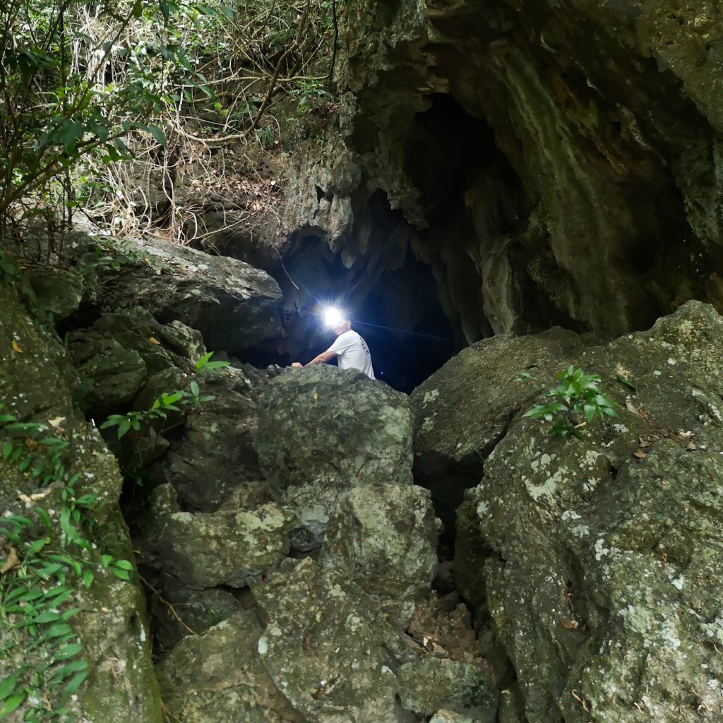 Wir beide haben heute morgen (wie übrigens jeden Morgen) zuerst eine Sonnencreme-Vorwäsche und einen darauffolgenden Mückenspray-Vollwaschgang hinter uns. Eins können wir euch sagen – gut riecht das nicht, es klebt und stinkt. Das Traurige: Es scheint die Mücken nicht vor einem bösartigen und hinterhältigen Angriff abzuhalten. Wir sind wahrscheinlich keine 10 Minuten dort und kassieren beide viele Stiche. Caro legt nochmal Mückenspray nach und setzt gleichzeitig zum Gegenangriff an. Die Laune sinkt, während die Aggression steigt. Diese nichtsnutzigen und bösartigen Lebewesen – auf dass sie alle von hungrigen Riesen-Geckos gefuttert und von lauernden Spinnen in ihren Netzen gefangen werden. Wie ihr merkt, das Interesse an der Höhle rückt leicht in den Hintergrund. Wir werfen einen Blick hinein und machen uns dann wieder aus dem Staub.