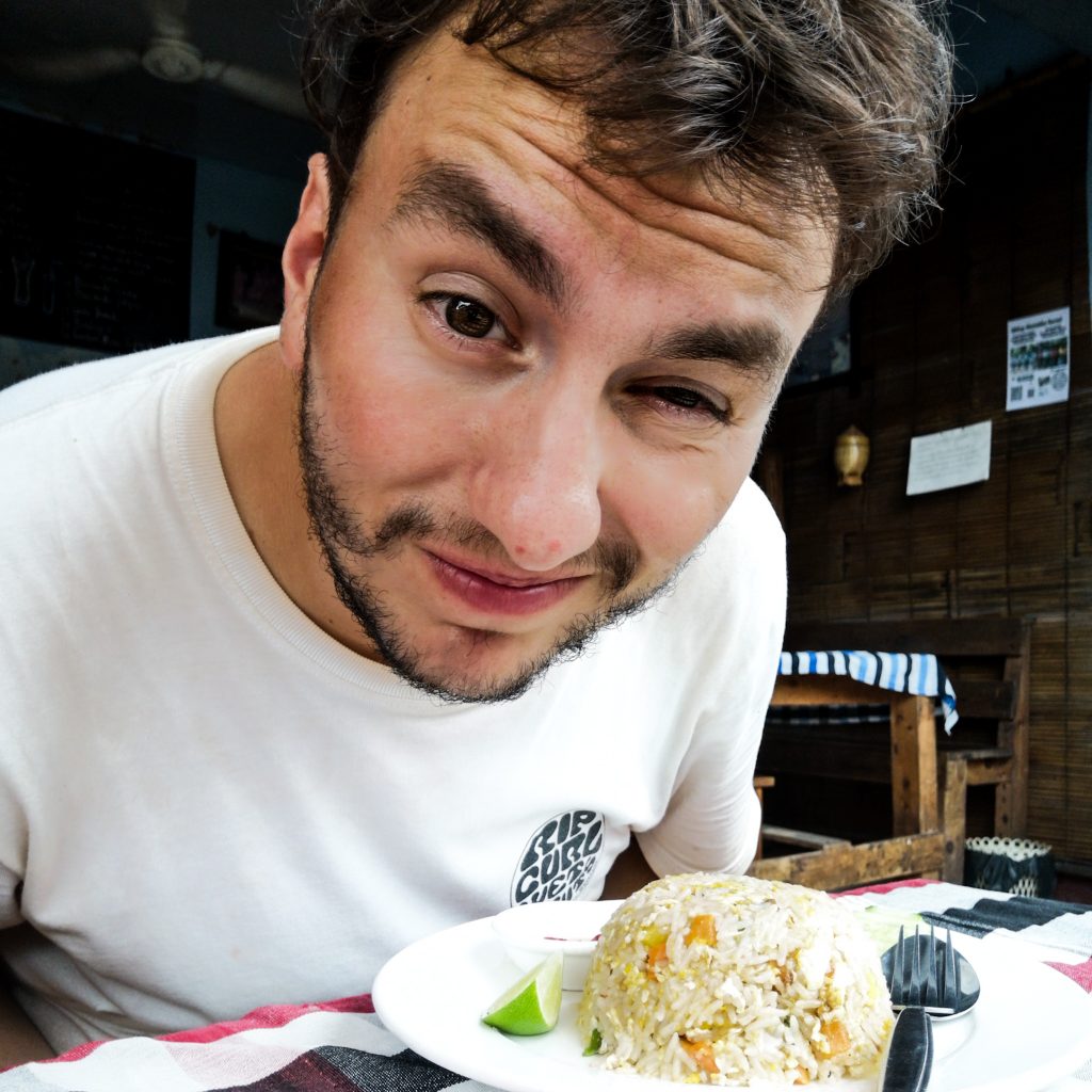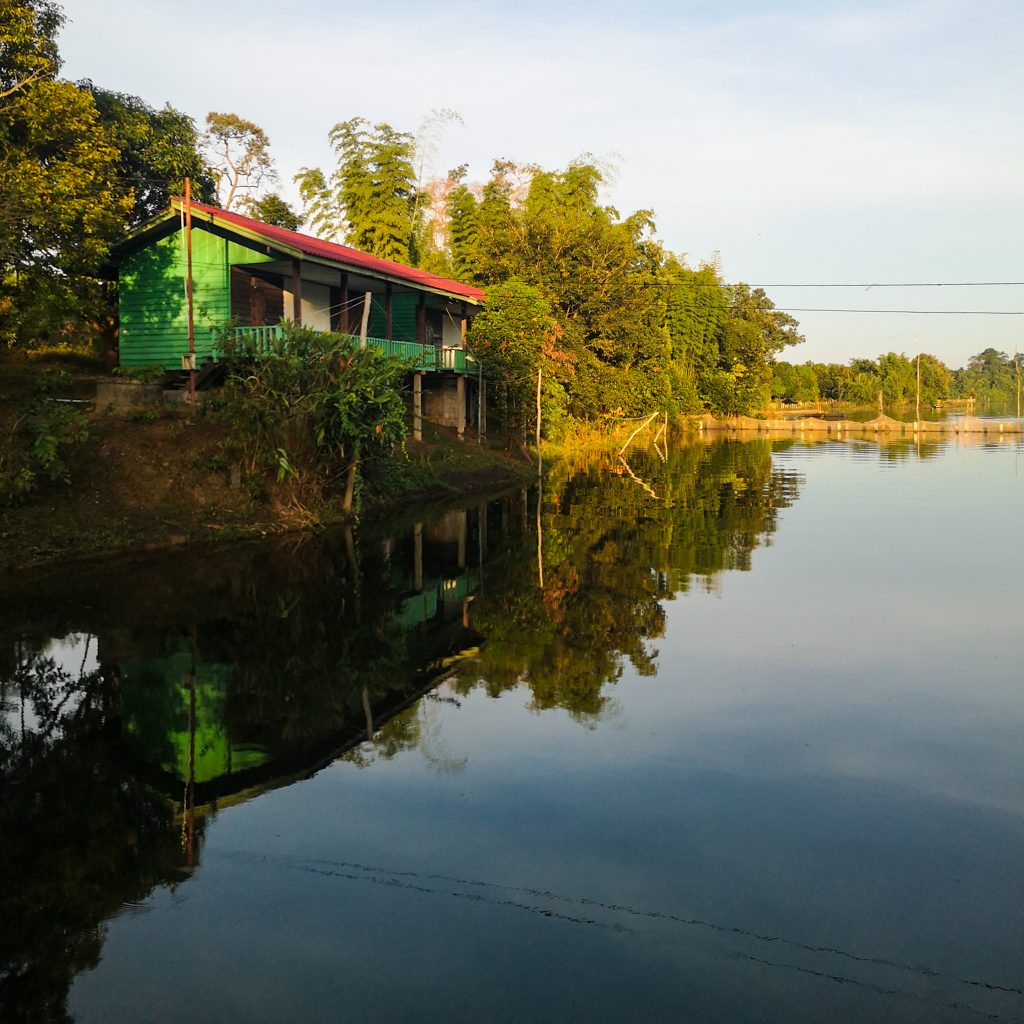 Wir packen also unseren Rucksack und checken in unseren Bungalow ein. Es ist sehr simpel, aber vollkommen ausreichend. Lustigerweise läuft auch hier das Wasser aus dem Waschbecken auf den Boden. In einer Ecke gibt’s dann ein Loch im Boden. Das geht vermutlich einfach nach draußen unters Haus. Wir gehen duschen und essen noch eine Kleinigkeit zu Abend, bevor wir uns auf den Weg ins Bett machen. Ab unters Mückennetz!