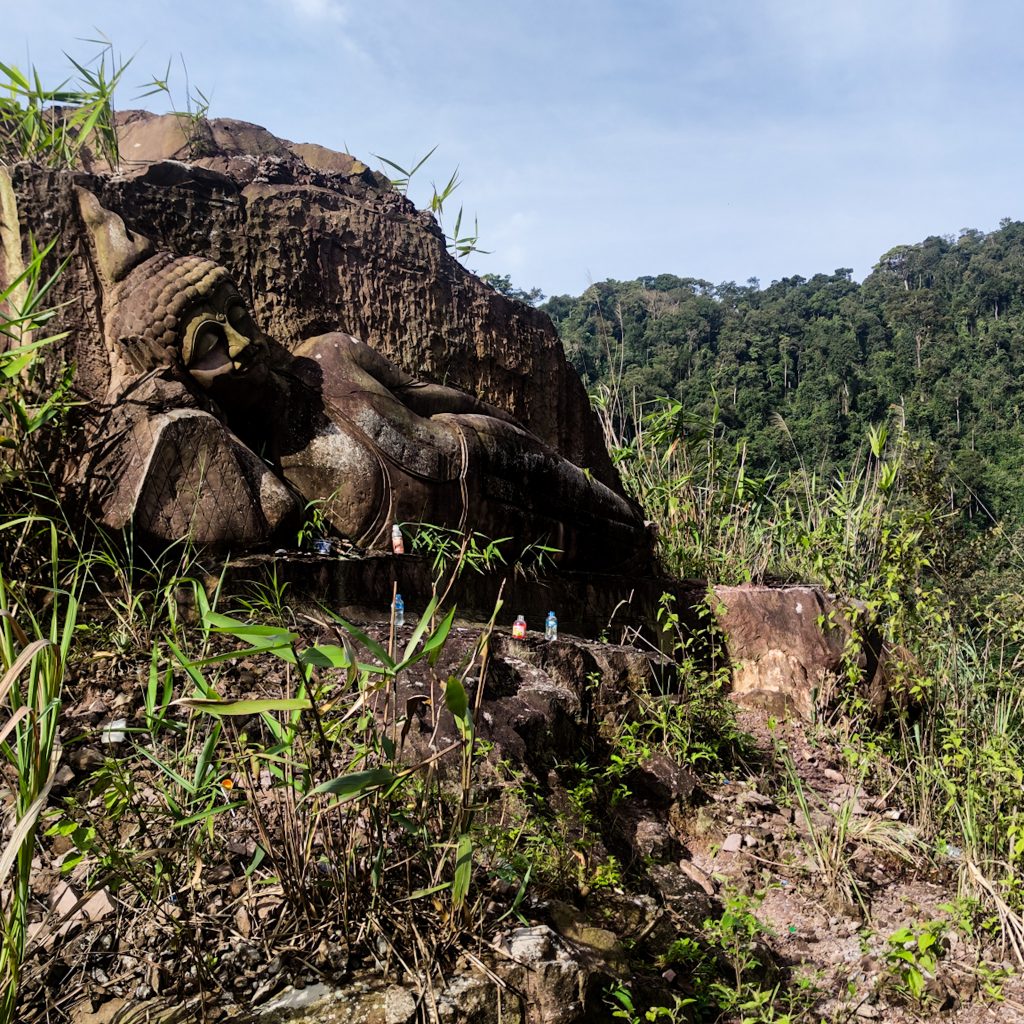 In die Felsen am Straßenrand sind Buddha-Figuren gehauen worden. Eine Figur reiht sich an die nächste. Auch ein wirklich schönes Bild. Bis auf die Opfergaben, die sich darunter befinden. Anscheinend freut sich Buddha besonders über bunte Getränke in Plastikflaschen oder -Bechern. Bei Letztem wird übrigens stets an den Strohhalm gedacht, der direkt verzehrfertig im Becher steckt. Mal davon abgesehen, gefallen uns die Figuren sehr gut.