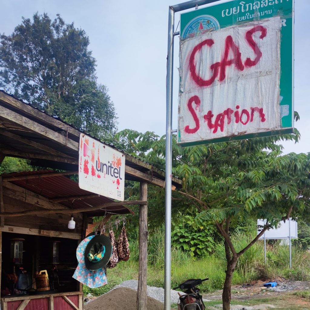 Bei der Weiterfahrt fällt unser Blick dann auf die Tankanzeige. Ui, der ist ganz schön leer. Während wir beim Pakse-Loop immer wieder zwischendurch getankt haben, haben wir hier bisher noch gar nicht getankt. Natürlich ist gerade keine Tanke weit und breit in Sicht. Internet Empfang – Fehlanzeige. Also fahren wir einfach mal weiter.