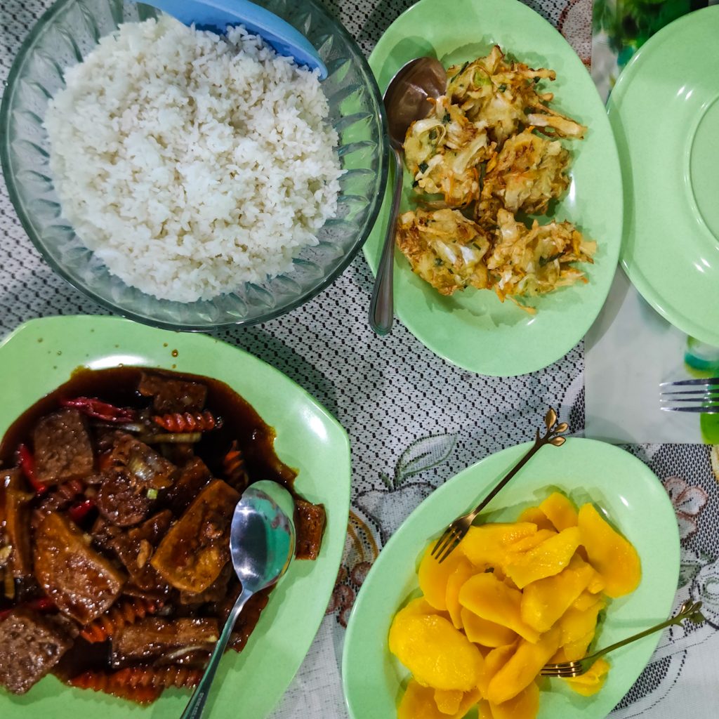 Danach geht’s zurück in unser Zimmer, duschen und um 19 Uhr werden wir zum Abendessen gerufen. Wir bekommen wahnsinnig gutes Essen aufgetischt. Bei der vegetarischen Variante haben wir gebratenen Reis mit Gemüse erwartet. Aber dazu gibt es noch eine Art Salat und zum Nachtisch frisches Obst, das süßer und geschmackvoller nicht sein könnte.