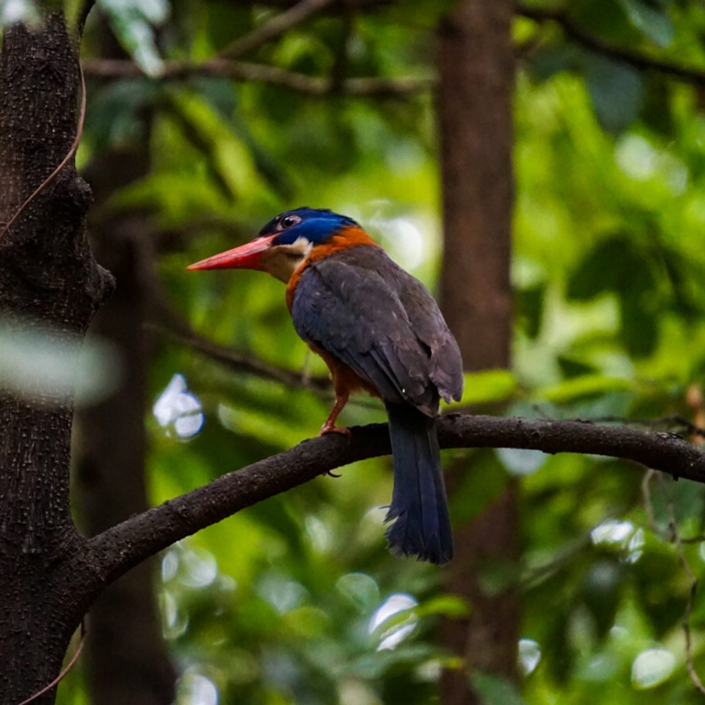 Der Nationalpark wir heute zu Fuß erkundet. Unser Guide ist einen Kopf kleiner als Konsti und hochmotiviert, so starten wir pünktlich um 6 Uhr. Wir sind erstmal froh, dass wir nicht mit der großen singapurischen Gruppe losziehen. Zunächst sind wir sehr verwundert über die großen Koffer, die fertig gepackt vor ihren Zimmern stehen, später wird sich dieses Rätsel noch auflösen. Ansonsten würden wir die Gruppe folgendermaßen beschreiben: laut, aufgeregt, zu wach für 6 Uhr morgens. Wir ziehen los und der Nationalpark ist auf den ersten Blick weniger grün als wir erwartet hätten. Der Boden ist voll mit braunen Blättern und unser Guide erklärt uns, dass dies an der sommerlichen Trockenzeit liegt. So kann er aber besser Tiere hören und sichten, umso besser für uns also. Wir laufen ein ganz schönes Stück. Als erstes stehen die schwarzen Makaken-Affen auf unser Spotting-Liste. Vorab laufen uns ein paar Vögelchen über den Weg. Eins davon erinnert an ein Rebhuhn und ist hier auf Sulawesi beheimatet.