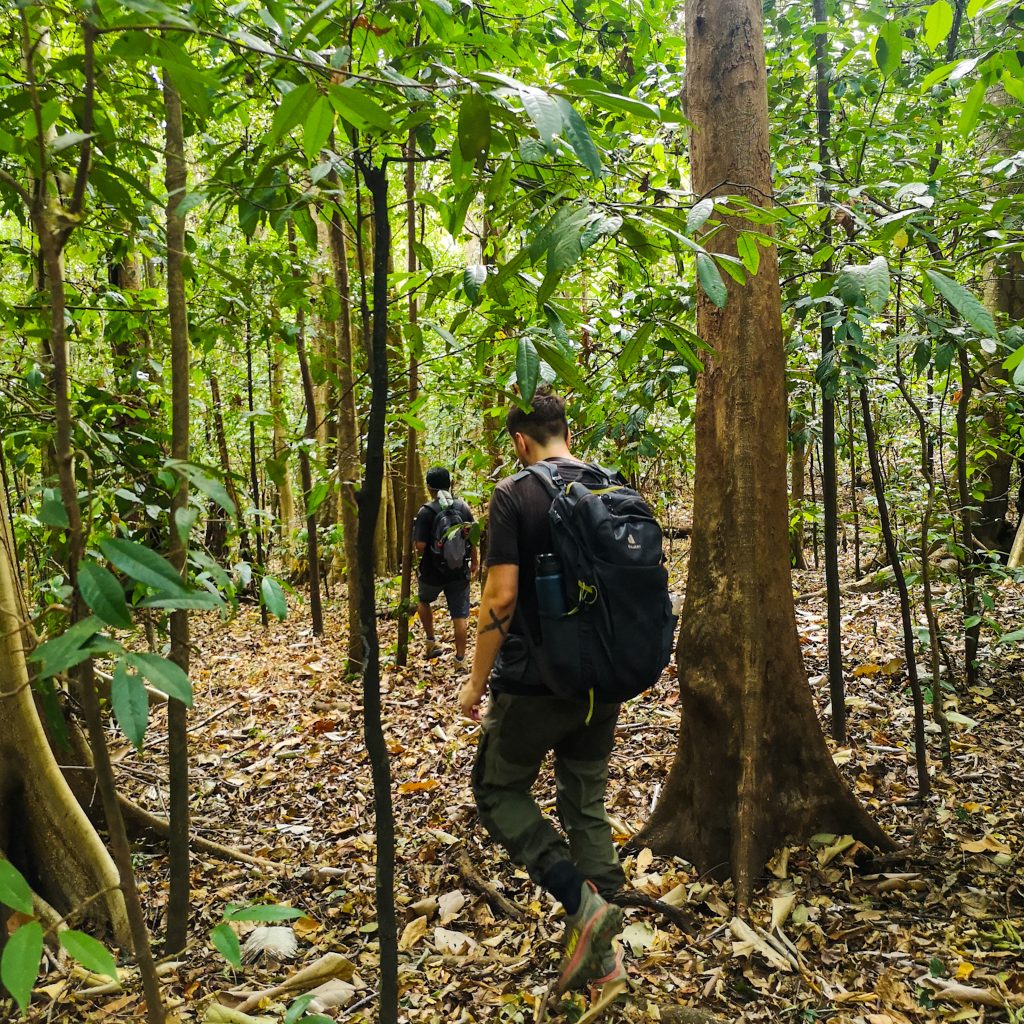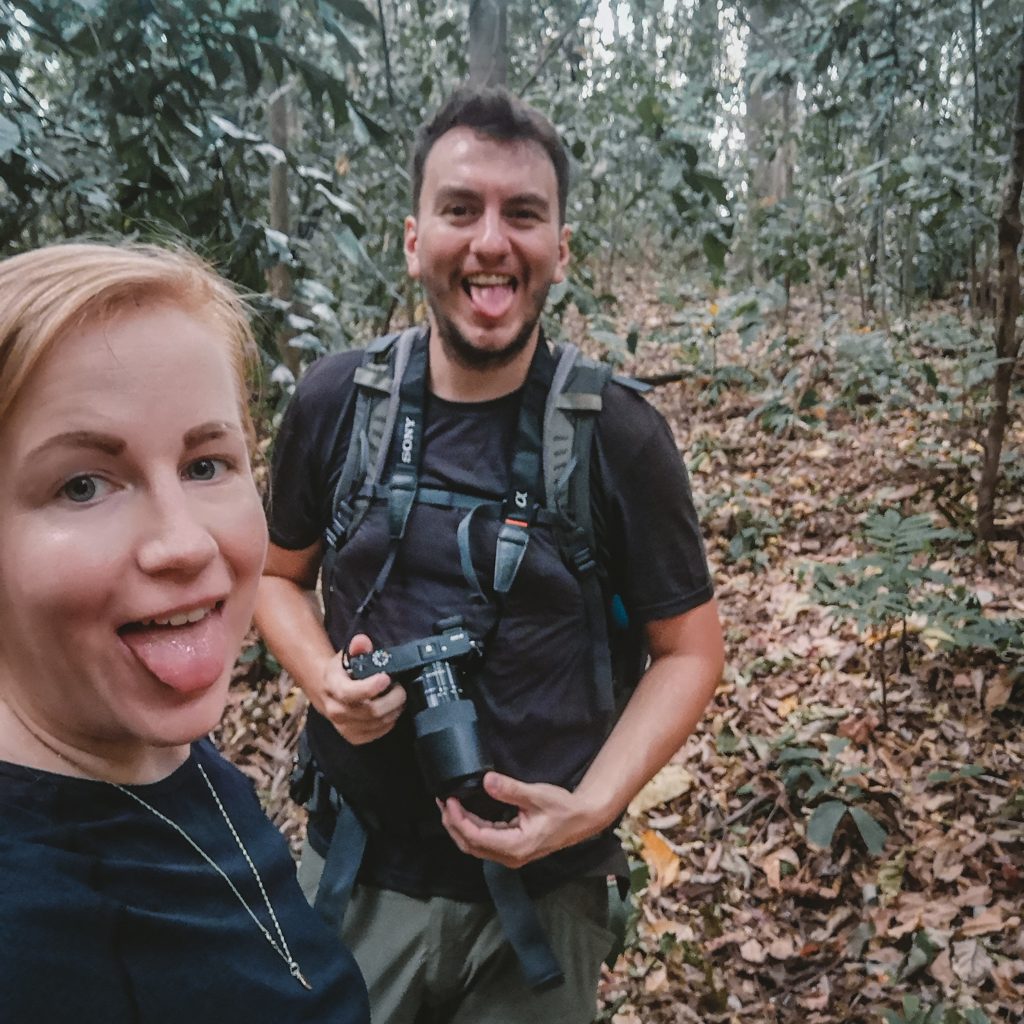 Auf dem Heimweg kommen uns dann einige der Abendtour-Gruppen entgegen. Statt wie wir eine Ganztagestour zu machen, machen andere eine Morgen- und eine Abendrunde. Tagsüber gibt es viele Vögel zu sehen, wer hinter das Wort Vogel aber leidenschaftlich gerne noch das Suffix -Spinne stellt, kommt erst abends auf seine Kosten, wenn die Vogelspinnen zu sehen sind. Wir brauchen das nicht unbedingt und sind auch wirklich fertig. In einer der Gruppe erkennen wir auch Andi und Anja wieder und grüßen. Auf einmal sagt jemand anderes aus der Gruppe: „Seid ihr nicht die Cluburlauber?“ Wir sind etwas verdutzt, weil wir keine Ahnung haben, wer da vor uns steht und wer uns erkennen könnte. Ein bisschen peinlich berührt sind wir schon, denn in unserer Followerschaft auf Instagram gibt es nur wenige, die wir nicht persönlich kennen oder zuordnen könnten. Es stellt sich heraus, dass Robert uns folgt, seitdem wir kurz nacheinander in Pakistan im selben Hostel gewesen sind. So klein ist die Welt mal wieder.