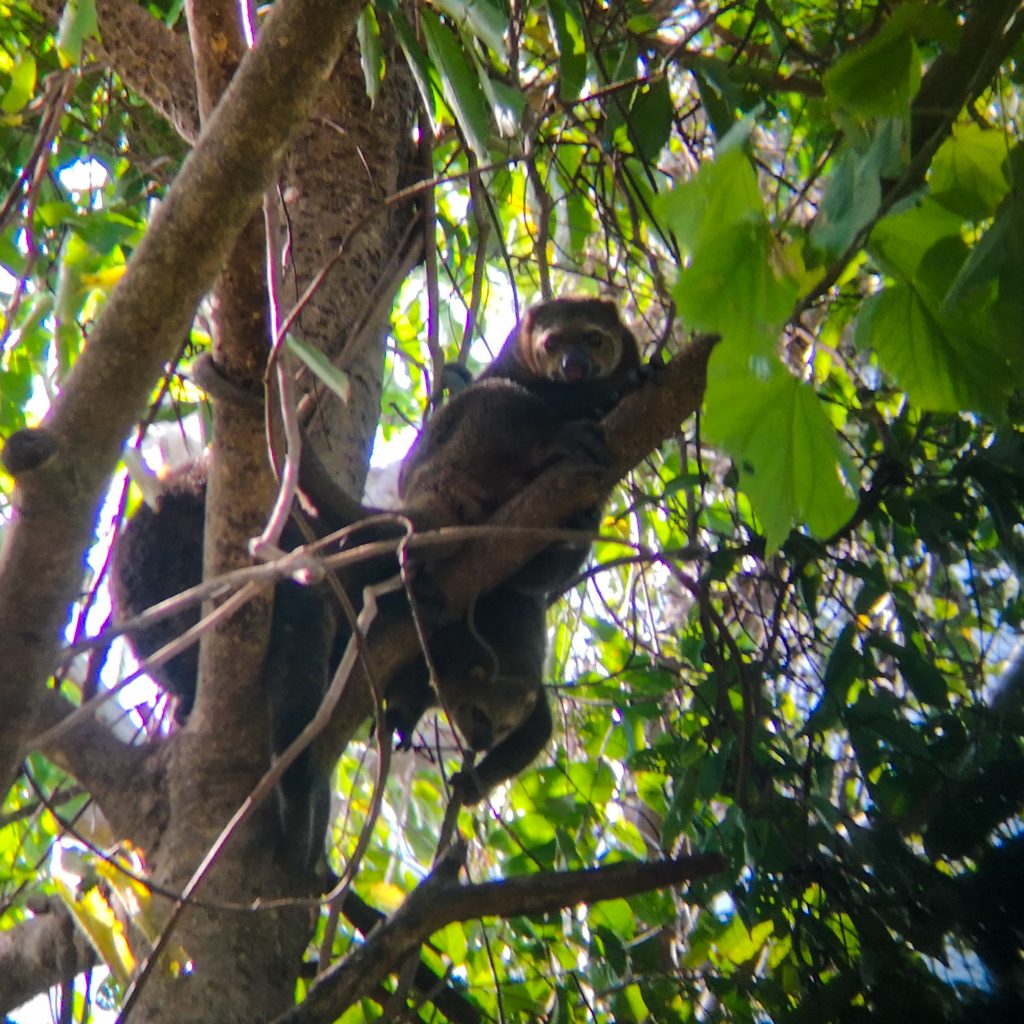 Wir treten den Heimweg an und machen nochmal einen Abstecher zu den Koboldmakis. Die erwarten uns schon. Alle vier hintereinander auf einem Ast sind sie jetzt schon wesentlich wacher. Die Müdigkeit ist schnell vergessen und wir freuen uns über diese zweite Begegnung. Danach geht es aber wirklich Heim.