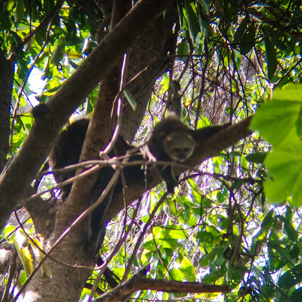 Koboldmakis sind nachtaktive Tiere, die in kleinen Gruppen/Familien bis zu 6 Tieren zusammenleben. Sie sind reine Fleischfresser, die sich von Insekten und kleinen wirbellosen Tieren wie Schlangen und Spinnen ernähren. Uns erinnern sie entweder an kleine Furbies oder Meister Joda. Im Verhältnis zu ihrem Körper wirken ihre Hände mit den langen Fingerchen recht groß. Auf den zweiten Blick entdecken wir dann noch einen zweiten kleinen Freund, der etwas höher im Baum sitzt. Unser Guide erklärt uns, dass National Geografic hier bereits eine Doku über die Koboldmakis gedreht hat. Mit einem Grashalm streicht er im Blickfeld der Koboldmakis über einen Ast. Das zieht die Aufmerksamkeit der kleinen Kerle auf sich. Grashüpfer zählen nämlich zu ihren Lieblingssnacks. Die Augen werden größer und die Öhrchen werden aufmerksam ausgefahren. Zu niedlich, wir können uns nur schwer von dieser neuen Bekanntschaft trennen.