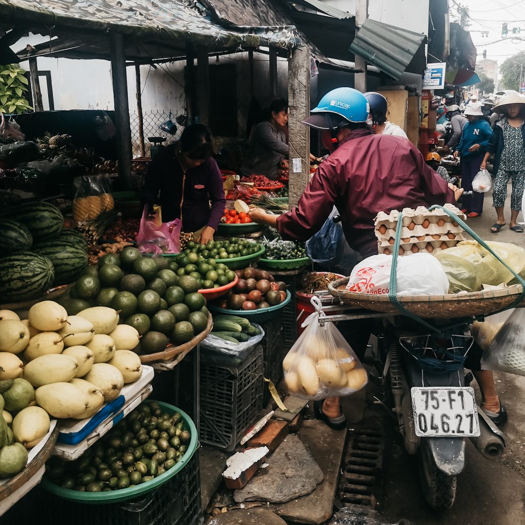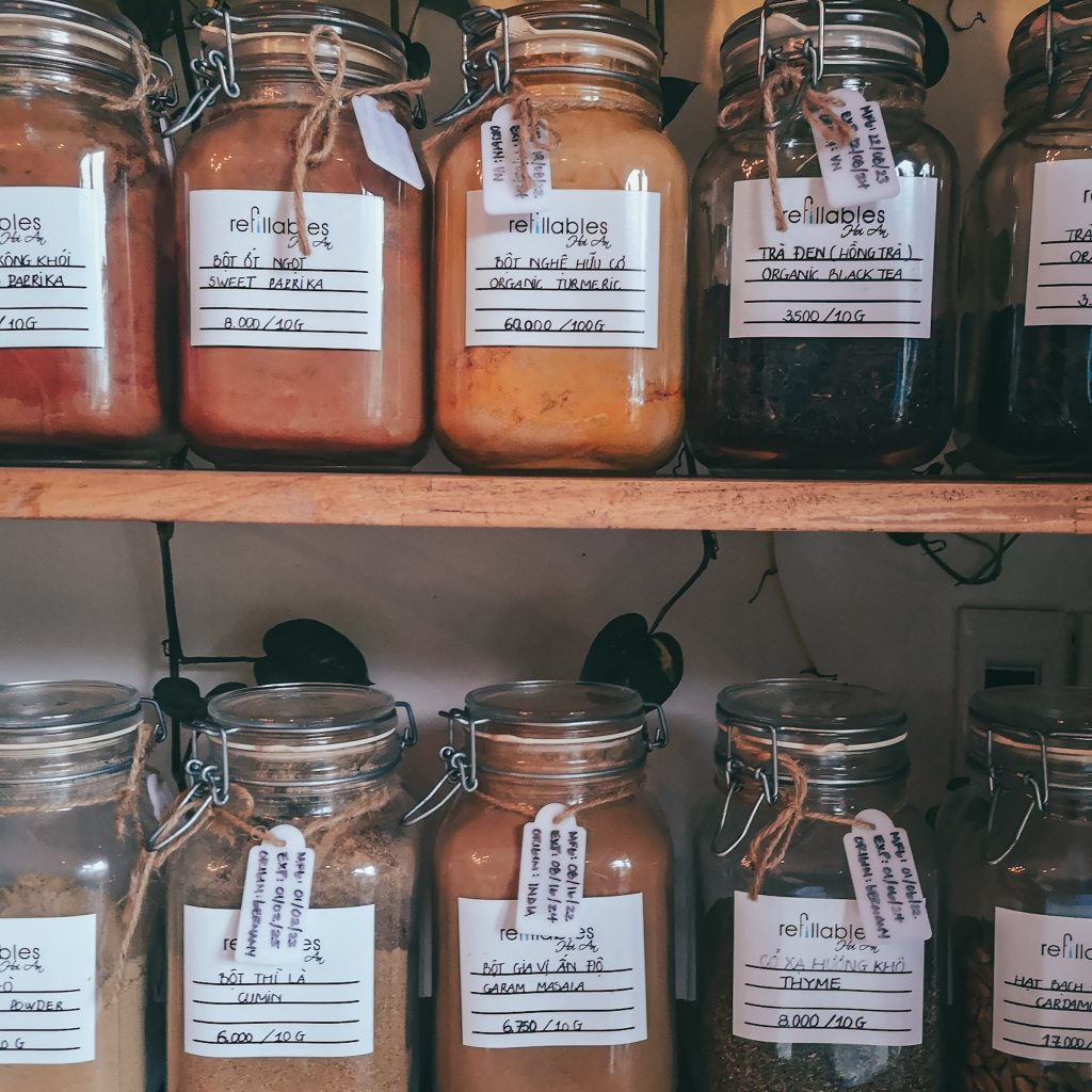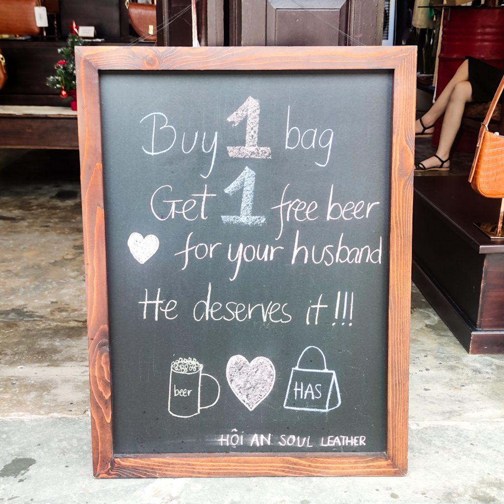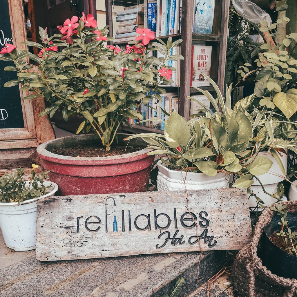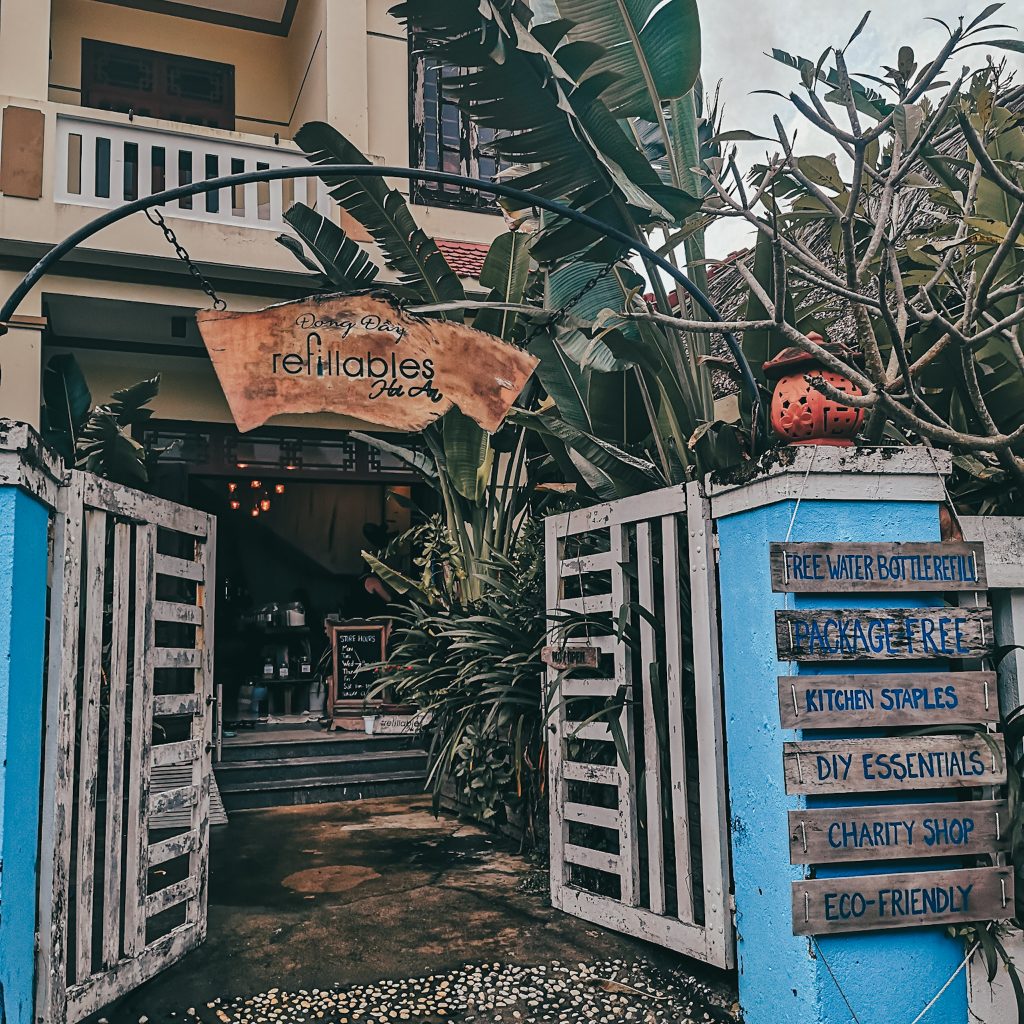 Auf einem Instagram-Profil haben wir gesehen, dass es hier in Hoi An auch einen Unverpackt-Laden gibt. Festes Shampoo haben wir ja praktischerweise gerade erst aus Deutschland mitgebracht bekommen, aber uns interessiert, wie ein Unverpackt-Laden in Vietnam so aussieht und welches Sortiment hier angeboten wird. Außerdem kommt uns die Idee, dass wir auch mal Zahnputztabletten (Alternative zu Zahnpasta in Plastiktuben) ausprobieren wollten. So können wir noch ein paar Schritte an der frischen Luft zurück legen und einen anderen Teil von Hoi An kennenlernen. Es geht nämlich stadtauswärts, immer weiter weg von der touristischen Altstadt. Wir laufen durch ein ruhiges Wohnviertel und sind plötzlich da. Ganz unscheinbar und inmitten der Wohnhäuser ist ein kleines Geschäft. Nur ein Holzschild am Eingang verrät, dass es sich hierbei um einen Unverpackt-Laden handelt. Ansonsten ist so ziemlich alles, wie in Deutschland. Im großen Einmachgläsern sind verschiedenste Produkte zu finden und man kann sich die gewünschte Menge an der Kasse abwiegen lassen. Wir nehmen 10 Zahnputztabletten mit und füllen kostenfrei unsere Trinkflasche auf. Danach spazieren wir weiter.