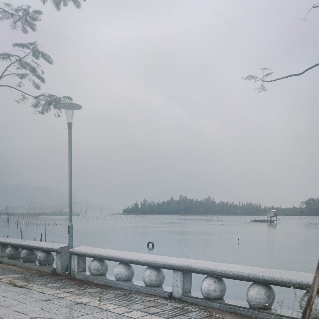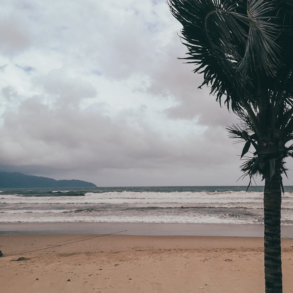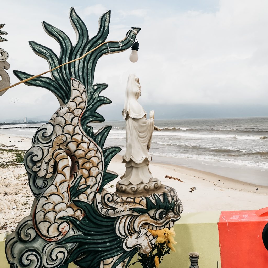 In Đà Nẵng sind wir so richtig am Meer. Bei gutem Wetter tummeln sich hier sicher die Menschen am Strand. Gerade ist die rote Flagge gehisst, der Wind bläst uns um die Ohren und nur eine Hand voll Menschen trotzen dem Nieselregen. Fast ein bisschen wie an der Ostsee, also mal abgesehen von den Temperaturen, die sind trotz des Wetters noch bei schnuckligen 30 Grad.