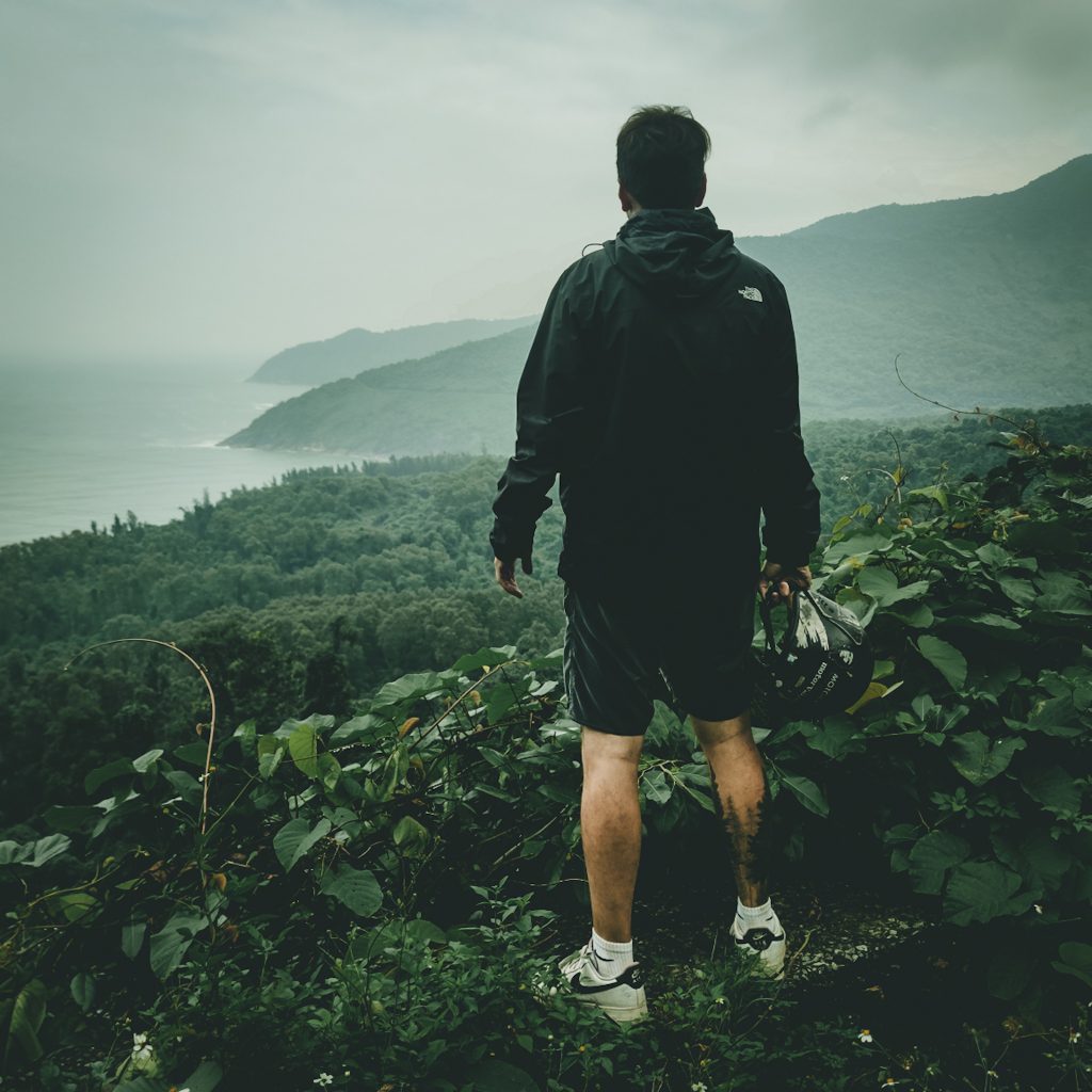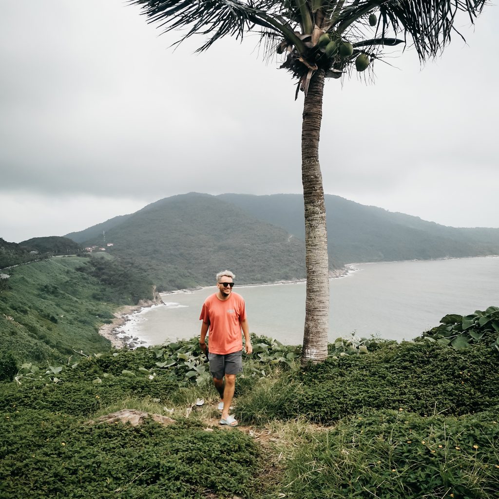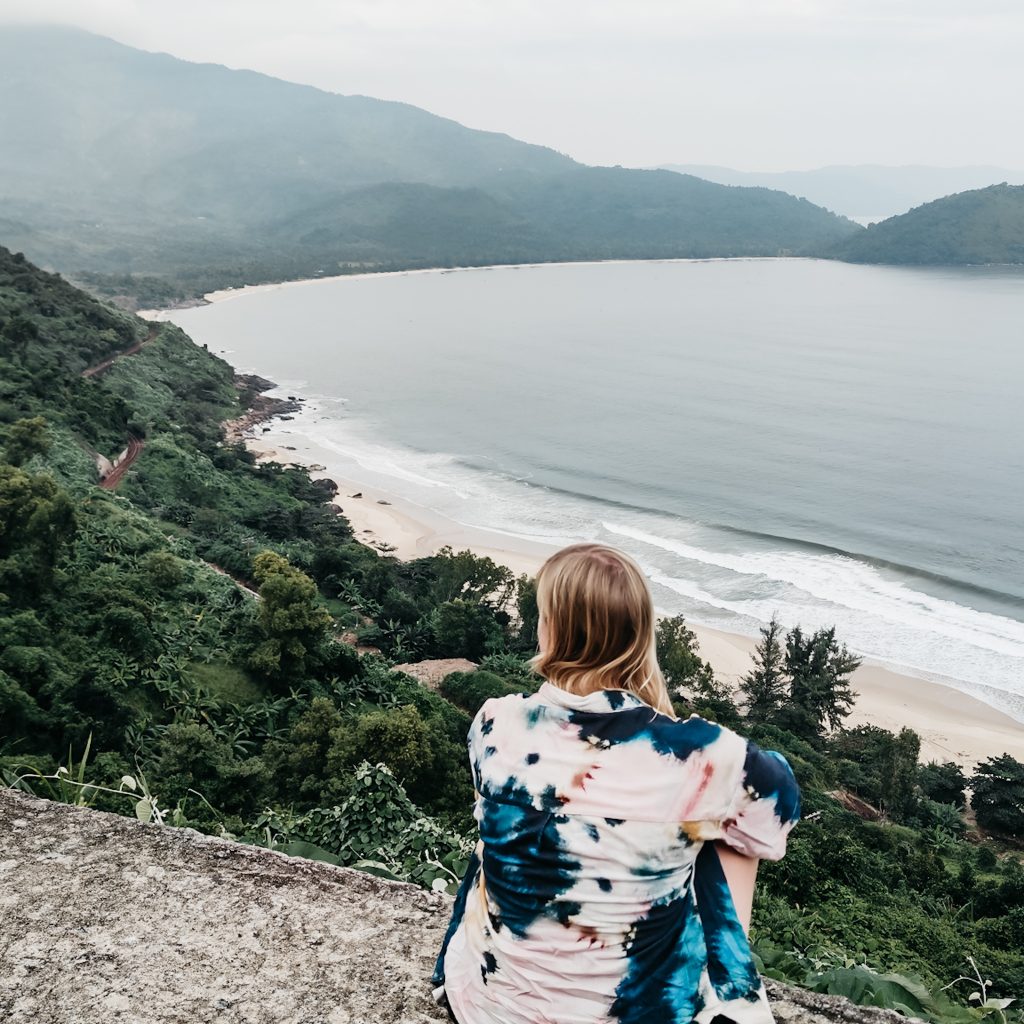 Wir machen Pause in einem Café. Der Besitzer ist super freundlich und versorgt uns mit ein paar Gläsern heißem Tee zum Aufwärmen. Dazu bestellen wir noch zwei Kaffee und machen eine kleine Pause. Genau zum richtigen Zeitpunkt, denn als wir unsere Fahrt fortsetzen, hat es tatsächlich aufgehört, zu regnen. Genau passend zu Beginn des Hai Van Passes. Wir sind jetzt direkt an der Küste. Links von uns das Meer und wir folgen der kurvigen Straße bergauf. Rechts von uns ist alles grün. Wunderschön, da kann man auch mal ein bisschen Regen in Kauf nehmen. Wir halten ein paar Mal und genießen die tolle Aussicht. Ein Wasserfall gibt es auch noch auf der Strecke, wäre ja auch komisch, wenn nicht. Auf dem Pass selbst, sind wir dann schneller als gedacht. Hier sind ein paar Cafés und natürlich ein paar Touri-Busse. Wir fahren weiter und finden nochmal einen viel schöneren Spot mit Aussicht auf eine Bucht. Hier sind wir (zumindest eine ganze Zeit) alleine.