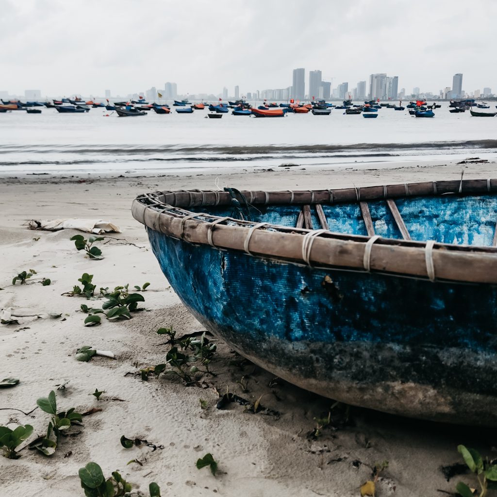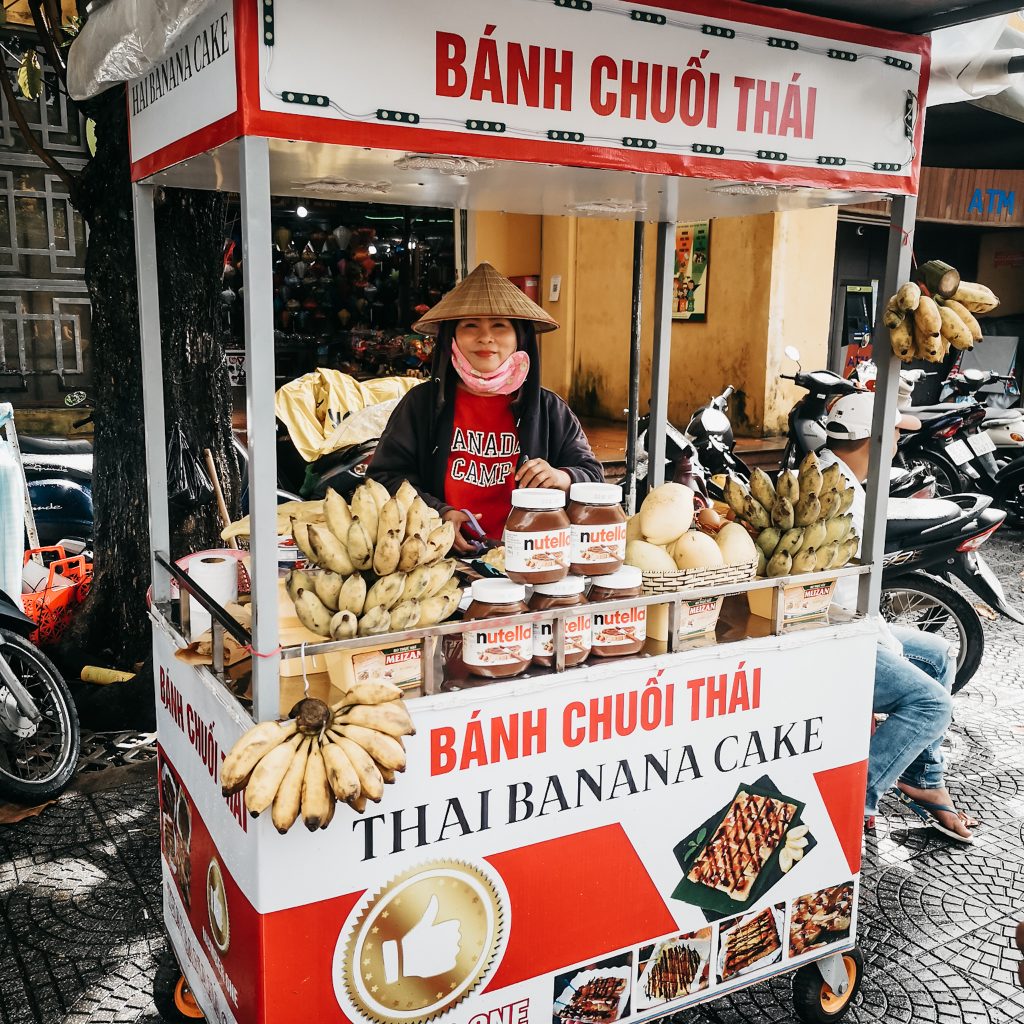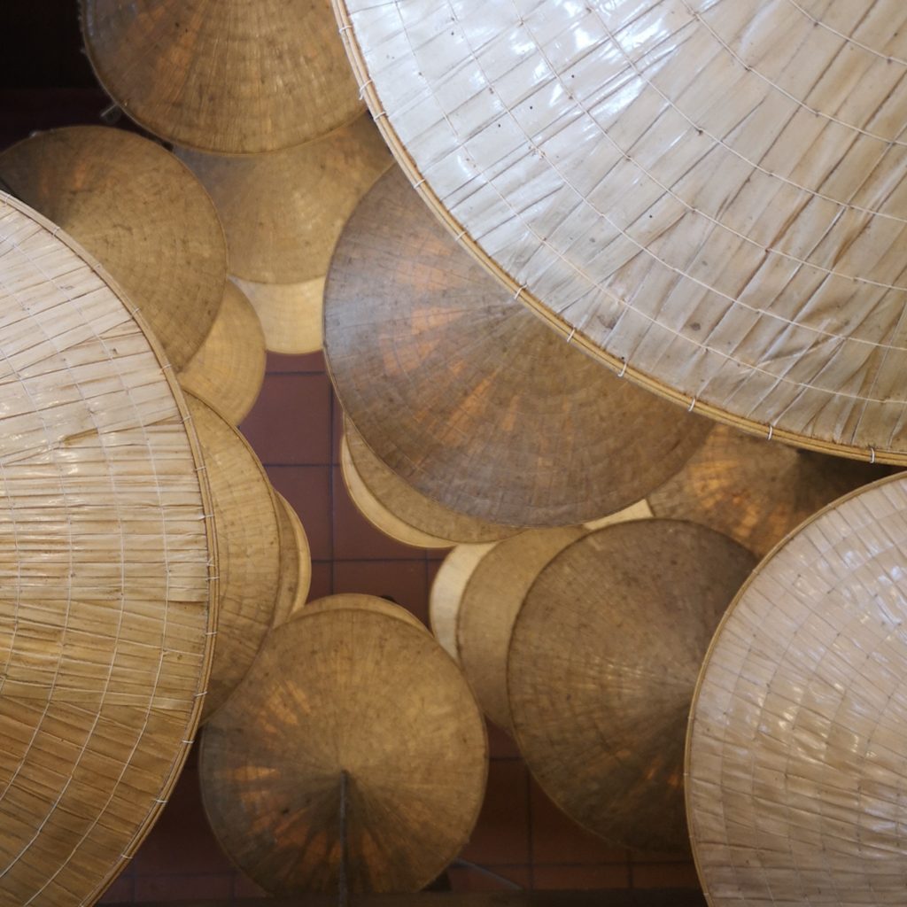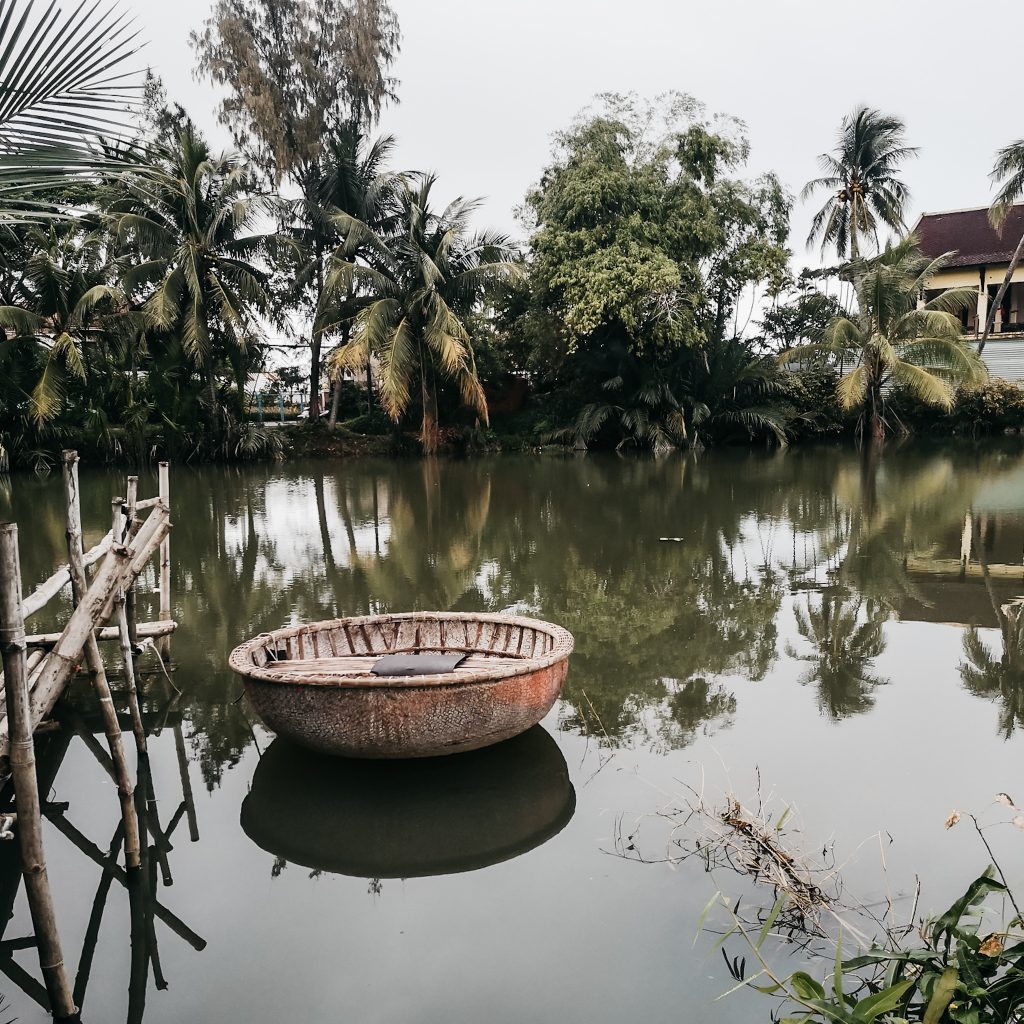 Heute werden die Reisenden besonders vom schönen Bild der Altstadt angezogen. Überall hängen bunte Laternen/Lampions und wer eine besondere Erinnerung an Hoi An haben möchte, kann sich hier ein Kleidungsstück schneidern lassen. Die Straßen sind gesäumt von Schneidereien, die innerhalb kürzester Zeit maßgefertigte Stücke nach ganz individuellen Wünschen herstellen. Die Welt der Speisen hat auch einiges zu bieten, das Cao lầu kennt ihr ja bereits, aber wir haben natürlich noch das ein oder andere weitere Gericht getestet. Passend dazu werden viele Kochkurse angeboten. In ein paar Cafés kann man sich sogar die Zubereitung des berühmten Egg Coffee’s aneignen. Außerhalb der Altstadt wartet dann noch eine weitere sehr typische Attraktion: Die Fahrt in einem runden Bambusboot. Die Boote sind tatsächlich aus Bambus und die Fahrten sind das reinste Schauspiel, vor allem wenn der Bootsführer das runde Gefährt in ein kleines Karussell verwandelt. Die Fotos mit lauter Touri-Massen, das regnerische Wetter und der Preis schrecken uns aber ab, an dem Spektakel teilzunehmen.