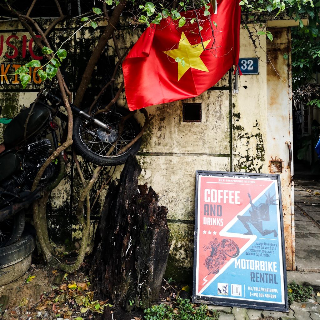 Damit ist schonmal klar, dass der folgende Tag anstrengend wird. Wir können noch nicht in unser Zimmer einchecken, daher steht ein starker und guter Flat White an oberster Stelle. In einem Kaffeeanbau-Land wie Vietnam glücklicherweise kein Problem. In einem kleinen und gemütlichen Café schmieden wir Pläne für den Rest des Tages. Ein paar Sights haben wir bereits herausgesucht und da alles nicht weit entfernt, aber dennoch nicht fußläufig ist, beschließen wir uns für heute zwei Drahtesel zu leihen. Statt fancy Mountainbikes (die mit einer entsprechenden Tagesmiete einhergehen) mieten wir uns zwei sehr einfache Fahrräder an der nächsten Straßenecke. Ein super Tipp von unserer Unterkunft. Das erste Ziel steuern wir direkt im Anschluss an. Auf der anderen Seite des Sees wartet die riesige Zitadelle von Hué auf uns. Kaum fahren wir los, fängt es übrigens an, leicht zu regnen. Eine Regenjacke haben wir heute morgen natürlich NICHT mitgenommen.