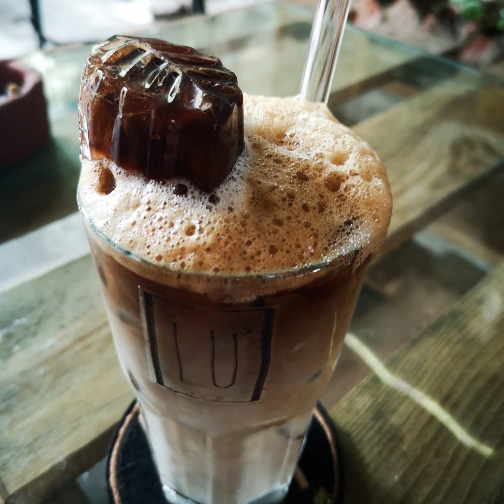 Wir haben sowieso Lust auf einen Kaffee. Wir genießen die Aussicht und machen uns dann auf den Weg zu einem kleinen Café nicht weit vom Strand. Dort halten wir auch nochmal kurz. Hier sind jede Menge Bambusboote und weitere kleine Schiffe. Statt für Touri-Touren werden die Boote hier tatsächlich von den Einheimischen benutzt. Wir tippen auf Fischfang.