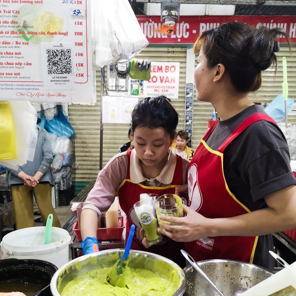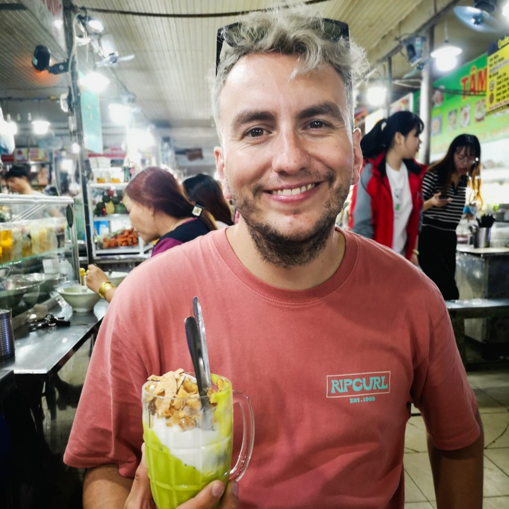 Wir düsen in die City, essen eine Kleinigkeit zu Mittag und machen dann noch einen schnellen Abstecher zu einem lokalen Markt. Hier sind viele Einheimische unterwegs und es herrscht ein wildes Treiben. Warum wir aber eigentlich hier sind: Avocado-Eis. Das soll hier ganz besonders hervorragend schmecken und besonders von den Menschen, die hier leben, in großen Mengen konsumiert werden. Serviert wird die nicht besonders ansehnliche grüne Soße mit Kokosnusseis in einem Becher. Mit einem Löffel soll dann alles vermischt werden. Schöner wird’s dadurch nicht, aber wir müssen zugeben: Es schmeckt tatsächlich sehr gut, die cremige Avocadosoße mit dem süßen Eis ist eine gute Kombi. Da es Caro heute allerdings nicht so gut geht, steuern wir im Anschluss wieder unser Hotelzimmer an. Jetzt ist erstmal ausruhen angesagt.