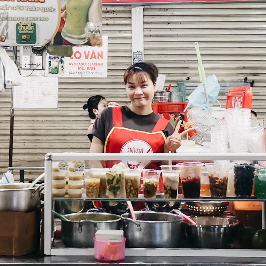 Heute Abend wollen wir den Roller aber noch ausnutzen. Wir fahren wieder ins Zentrum und steuern eine Bar an. Diese haben wir zufälligerweise auf Instagram in den Feed gespült bekommen. Das Besondere: Es ist kein richtiger Eingang sichtbar und somit zählt die Bar zur Kategorie „Silent Bar“, wie wir sie schon aus Kuala Lumpur kennen. Der Zutritt erfolgt über einen Banh Mi Stand. Genau, richtig gehört. Augenscheinlich sieht man von außen einen Banh Mi Stand vor einer Mauer, wenn man diesen aber nach vorne zieht, versteckt sich dahinter eine kleine Bar. Ehrlicherweise ist das aber auch schon das Highlight, der Old Fashioned schmeckt maximal okay und der Charme der Bar ist ebenfalls okay. Über einen Fernseher läuft in Dauerschleife ein SuperRTL Cartoon (Oggy und die Kakerlaken).
