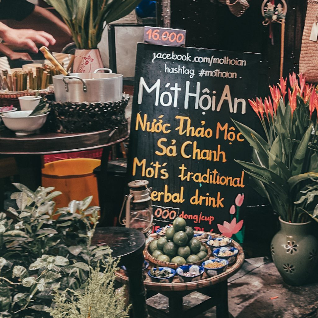 Danach ist der Regenschauer weitestgehend verzogen und wir spazieren in die Altstadt. Die Laternen kommen im Dunklen noch einmal besser zur Geltung. Es sieht wirklich schön aus und sogar in den Regenpfützen spiegeln sich die bunten Lichter. Auf dem Nachtmarkt gibt es sogar Stände, die nur Laternen verkaufen. Auch bei genauerer Betrachtung können diese natürlich nicht mit unseren Unikaten mithalten. Und weil wir uns hier auf lokaler Speisen-Expedition sind, testen wir auf dem Rückweg noch den kalten Kräutertee, der hier ebenfalls hoch angepriesen wird. Der schmeckt wider unserer Erwartungen ziemlich gut. Sehr würzig und frisch, vielleicht ein bisschen zu süß, aber bei heißem Wetter auf jeden Fall eine super frische und tatsächlich auch kostengünstige Erfrischung. So geht unsere Zeit hier in Hoi An auch schon wieder zu Ende. Am nächsten Morgen essen wir zum Abschluss nochmal Cao lầu zum Frühstück in unserer Unterkunft und machen uns dann auf den Weg nach Da Nang. Ausnahmsweise dauert die Fahrt dieses Mal weniger als eine Stunde.