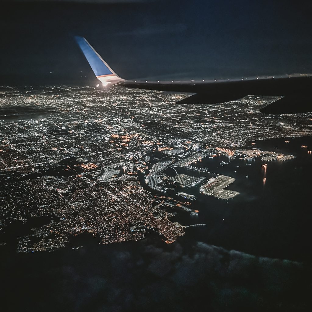 Auf diesem Flug sitzen wir nicht nebeneinander. Konsti sitzt zwei Reihen hinter Caro und wir sitzen beide am Fenster. Nicht weiter schlimm, wir wollen sowieso nur den Barbie-Film schauen und ein bisschen schlafen. Für die Minderung des Jetlags hat Konsti nämlich die App TimeShifter zu Rate gezogen. Dort gibt man seine Flüge zu den jeweiligen Ortszeiten und die Aufenthaltsdauer an den Flughäfen an und die App sagt einem danach, wann man schlafen oder eben nicht schlafen soll oder was anscheinend viel wichtiger beim Vermeiden des Jet Lags ist: Wann man sich wie viel Licht aussetzen soll. Wir sind etwas skeptisch, ob die Umsetzung realistisch ist, aber wann sollen wir die App testen, wenn nicht jetzt? Schon auf dem ersten Flug waren wir etwas im Schlafverzug, mal ganz abgesehen von unserer Nachtbusfahrt, naja. Bis irgendwann einmal LA!