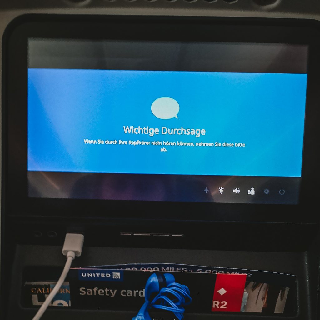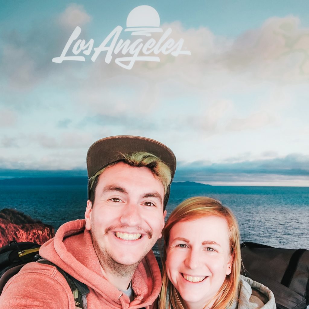 Es geht in den Flieger und wir sind ganz aus dem Häuschen als wir die TV Bildschirme mit der Filmauswahl sehen: Geil, damit haben wir ehrlicherweise nicht gerechnet, als wir die günstigsten der günstigen Tickets ausgewählt haben. Auch wenn es ein Langstreckenflug von einer großen Fluggesellschaft ist, war die Buchung alles andere als übersichtlich und informativ. Konsti konnte bei der Auswahl des Essens nur etwas sonderbare Wünsche angeben. Statt nur „vegetarisches Essen“ zu bestellen, sind wir so bei „asiatisch vegetarisch“ gelandet. Wir bekommen unsere Extrawurst also vor allen anderen Gästen serviert und schauen nebenbei „Oppenheimer“. Endlich, den Film wollten wir sowieso schon länger schauen. Passend dazu bestellt Caro sich einen Weißwein (juchhu, das ist der erste Weißwein seit einer Ewigkeit und er ist gar nicht schlecht). Konsti ist weniger erfolgreich, aus seinem Gin Tonic wird ein Tonic auf Eis, aber Caro lässt ihn natürlich am Genuss ihres Weines teilhaben. Nach dem Essen schlafen wir noch eine Runde und landen dann nach 10 Stunden Flug gegen Mittag des gleichen Tages in LA. So weit, so schick.