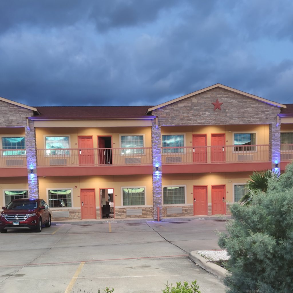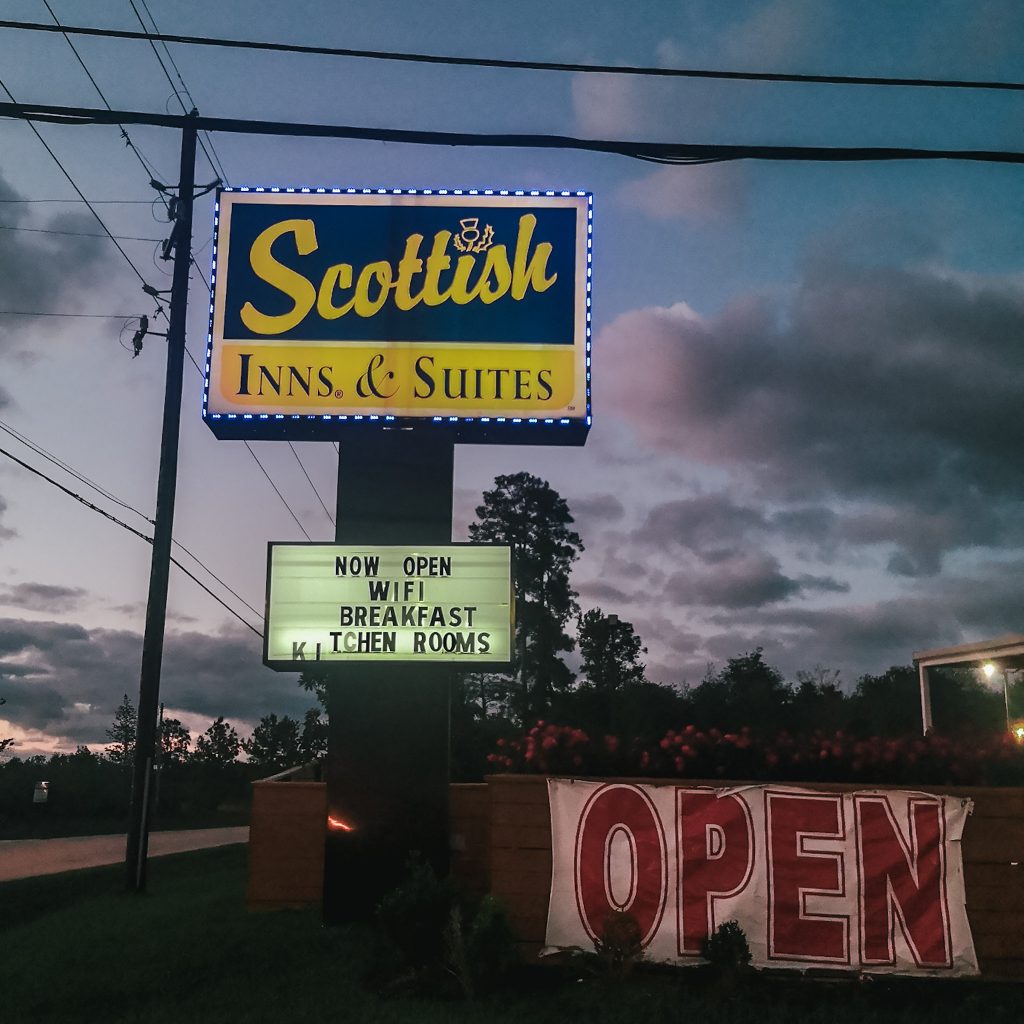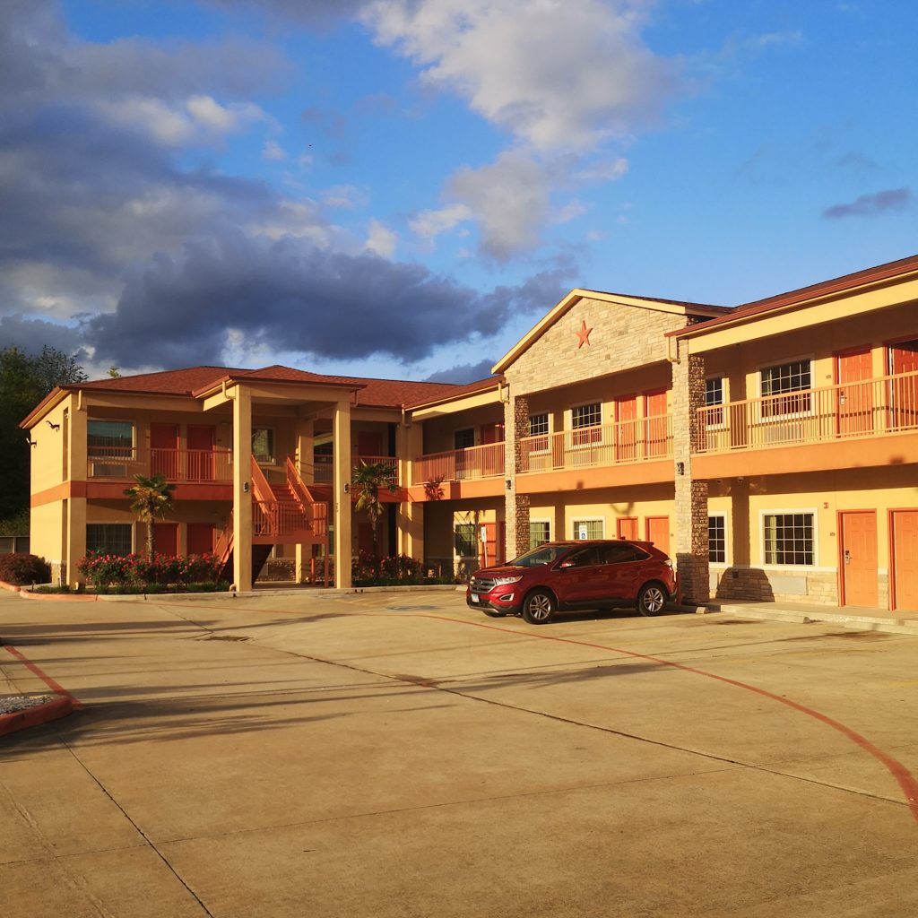 Wir entscheiden uns für ein nahegelegenes Hotel, welches wir mit einem Shuttle erreichen können. Kurz haben wir noch den Gedanken, ob wir uns etwas in der Stadt anschauen wollen, aber wir sind realistisch. Das wäre zum Fenster herausgeworfenes Taxi-Geld, denn lange würden wir sowieso nicht durchhalten. Also ab zum Hotel. Genauer gesagt zum amerikanischen Motel-Traum. Hier wird optisch JEDES Klischee erfüllt. In einem Gewerbegebiet liegt das Hotel direkt an der Straße, alles sieht genau aus wie in jedem amerikanischen Film, sowohl von außen als auch von innen.