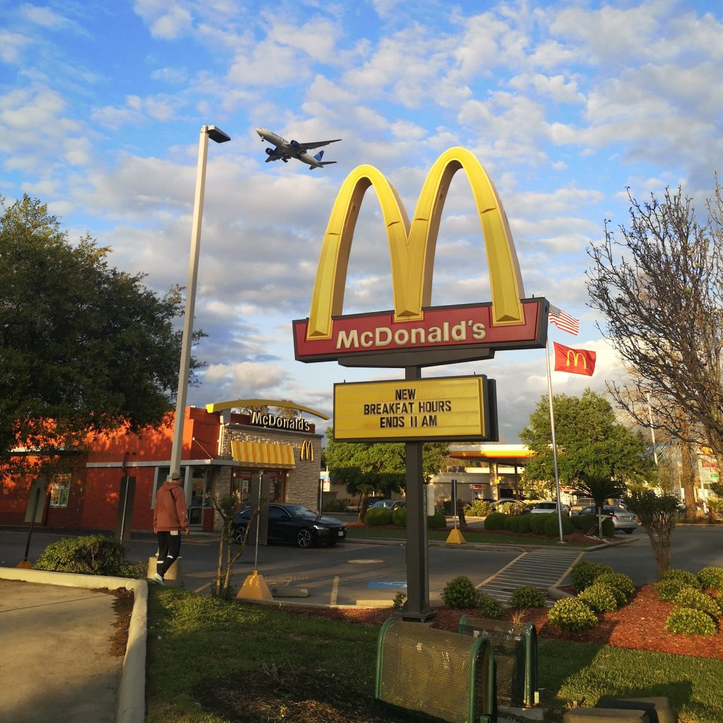 Also laufen wir einfach auf unserer Straßenseite, werden von vorbeifahrenden Pick-Up-Truck-Fahrern etwas verwirrt angeschaut und landen.. na, wer errät es? Natürlich bei McDonalds.